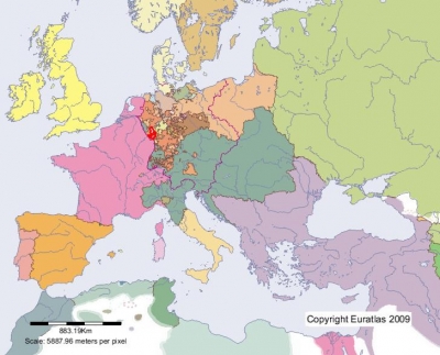 It is important to realize that the map of Europe as we know it bears no resemblance to Europe of a thousand years ago.  Instead of countries, vast areas of land were ruled over by dynastic families.  The Medieval regions of Francia, Neustria, Austrasia, Aquitaine, Almania, and Bavaria were ruled over by the Merovingian Dynasty (The Franks).  From the various dynasties, the countries of France, Germany, Italy, Spain, etc. eventually came into existence.  As I list these dynasties or houses in this article, I have included where available, maps showing the area of rule.  I have also included where available, the Coat of Arms of each dynasty.  You may notice that some of these Coats of Arms appear very similar to the national arms of current nations.  Why?  Because that nation is the remnant of that dynasty.
